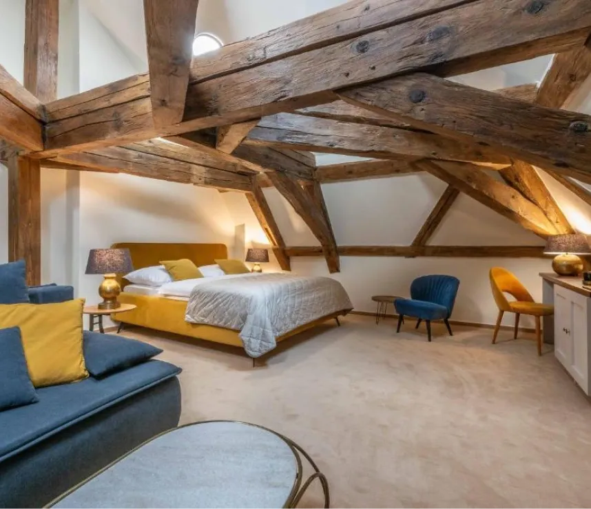 základní informacePokoj Delux je ideální volbou pro hosty, kteří chtějí během pobytu v Poděbradech více prostoru a pohodlí. Díky kombinaci manželské postele a rozkládacího gauče nabízí flexibilní řešení pro páry, rodiny i hosty, kteří preferují oddělená lůžka.